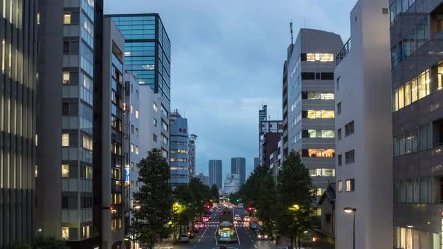 > Time-lapse footage of traffic in the evening in Tokyo, Japan
