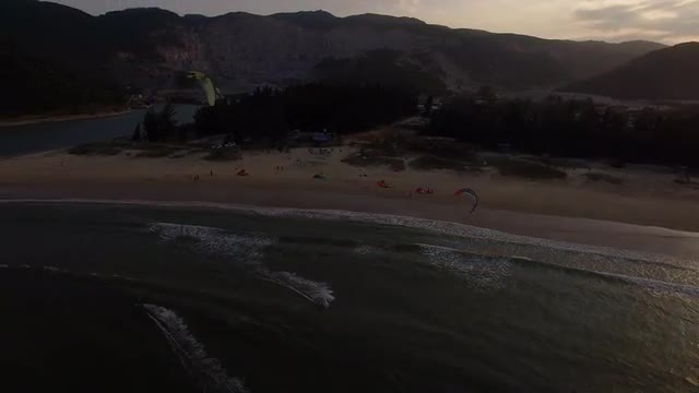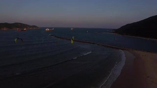 640045 - Kite surfer surfing at the beach in Sanya, Hainan island, China during sunset
