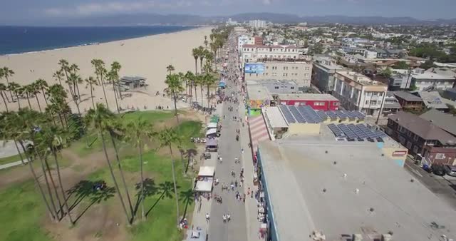 > Aerial footage over Sunset Boulevard in Hollywood at night