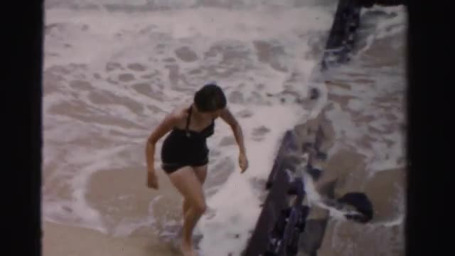 > 1955: women exploring beach view from above MIAMI, FLORIDA
