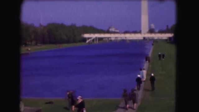 1946: people stand in the grass in front of the reflecting pool at the washington monument WASHINGTO