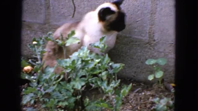 > 1963: a cat is sitting in the gardens CALIFORNIA