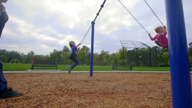 > 1975: woman pushing child on swing set outdoor CALIFORNIA