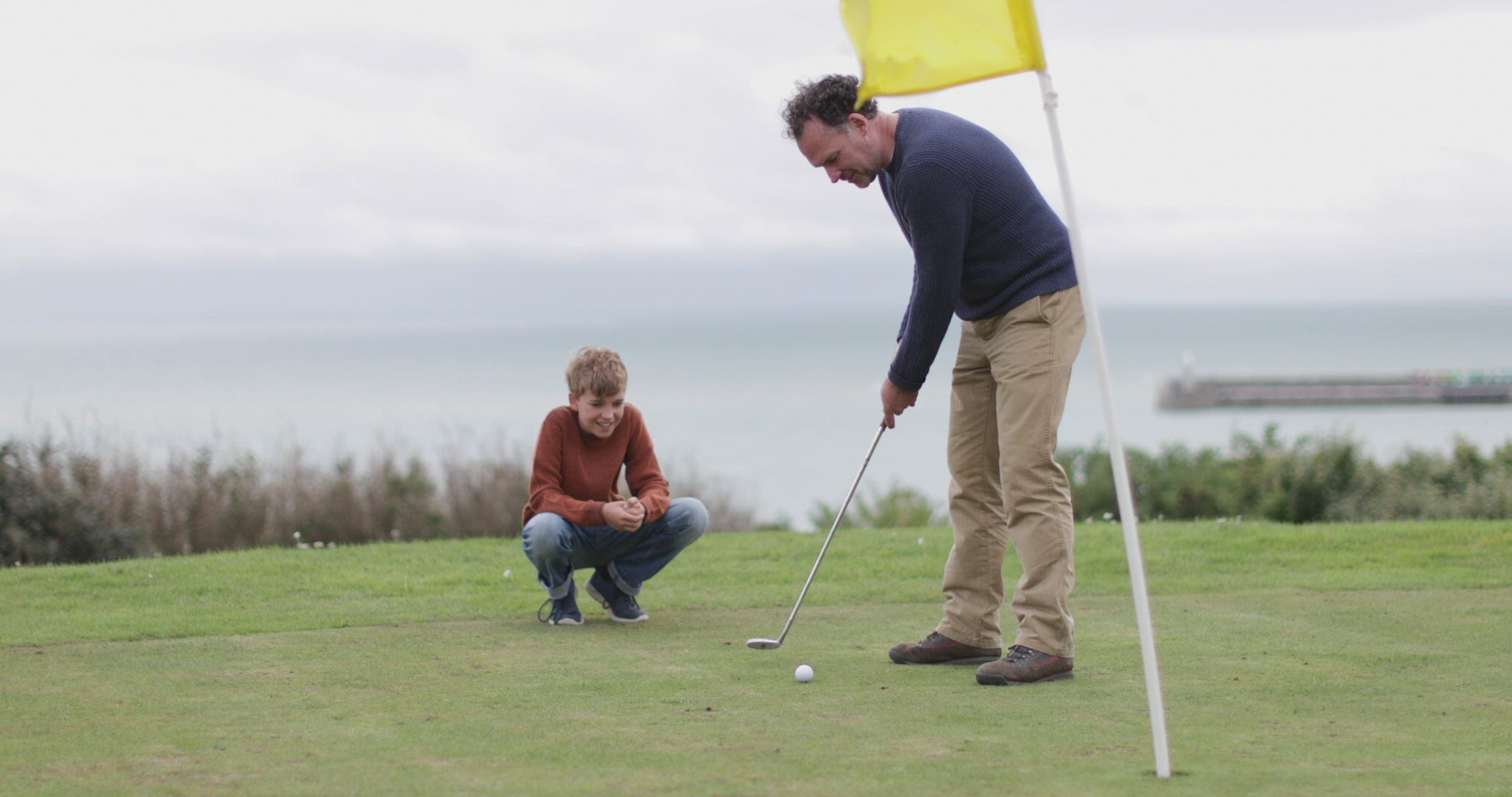 > 1975: a father is putting his son on a swing CALIFORNIA
