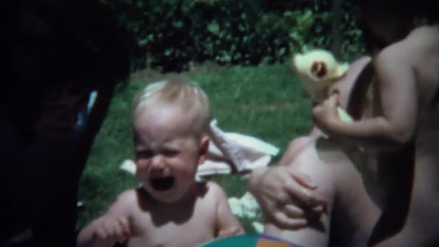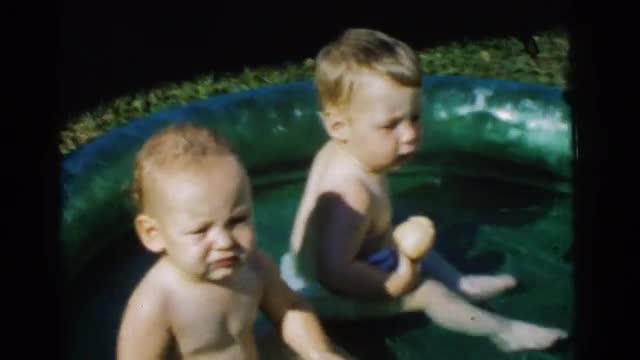 > 1947: baby crawling into a kiddie pool in the backyard with his brother in the summer MIDDLETOWN