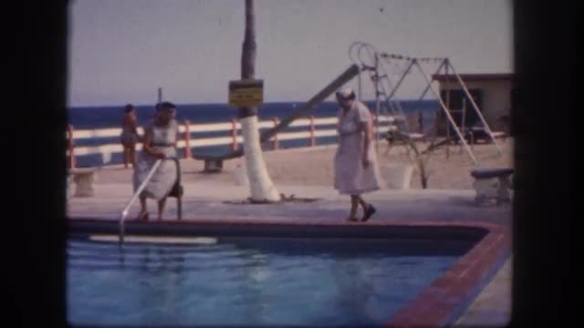 > 1960: old women at hotel pool beach scene FLORIDA