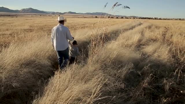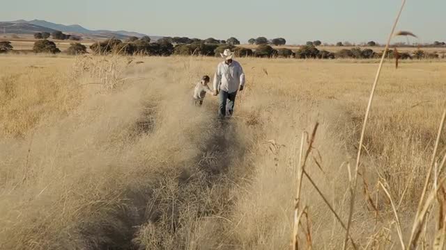 > 1947: father walking with his son on the farm MIDDLETOWN