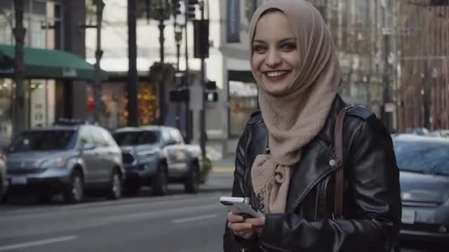 Young woman walking through the city