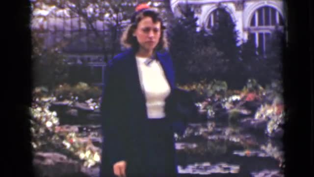 > 1951: a woman in a dress walking through an arboretum FLORIDA