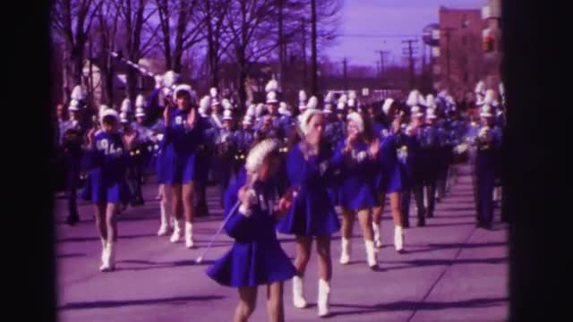 > 1974: a group of girls performing a great act in a spectacle on the street LYNBROOK, NEW YORK