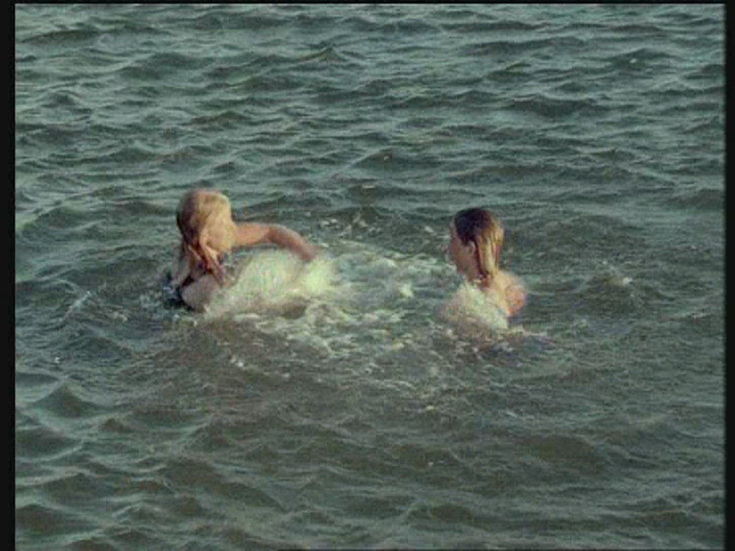 1976: girl in pink bathing suit splashing and playing in fenced swimming pool with blue tiles FORT W
