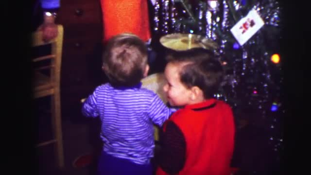 > 1973: a christmas tree is seen with a child opening presents LYNBROOK, NEW YORK