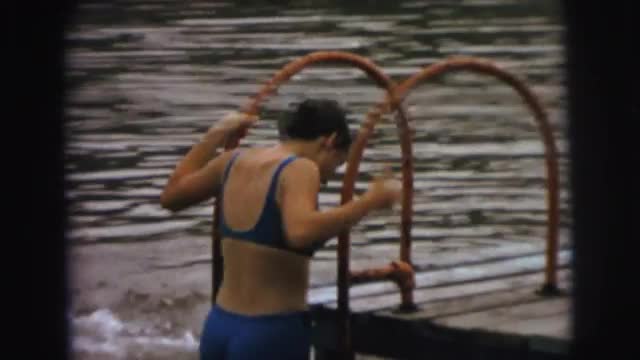 > 1944: a woman in bikini is seen coming out of pool NEW YORK