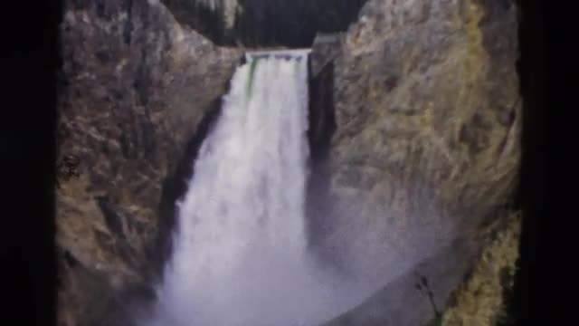 > 1958: epic yellowstone national park big waterfall in amazing natural wilderness location MONTANA
