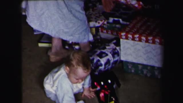 > 1972: baby boy's first christmas with family under tree opening presents LYNBROOK, NEW YORK