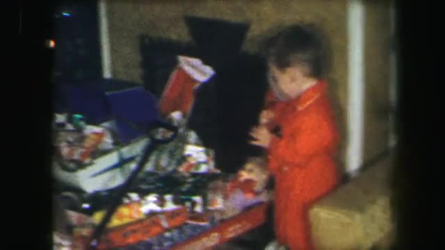 > 1972: kids having fun on christmas playing with toys opening LYNBROOK, NEW YORK