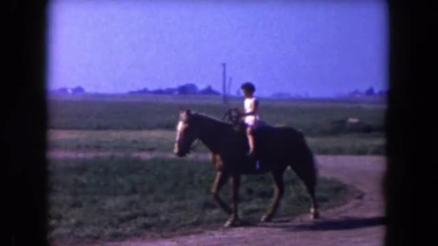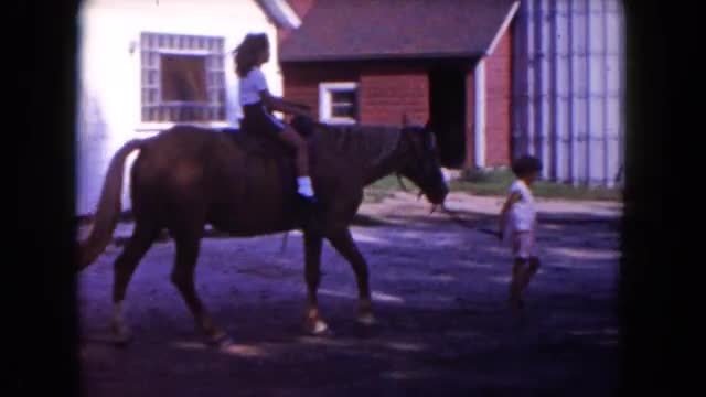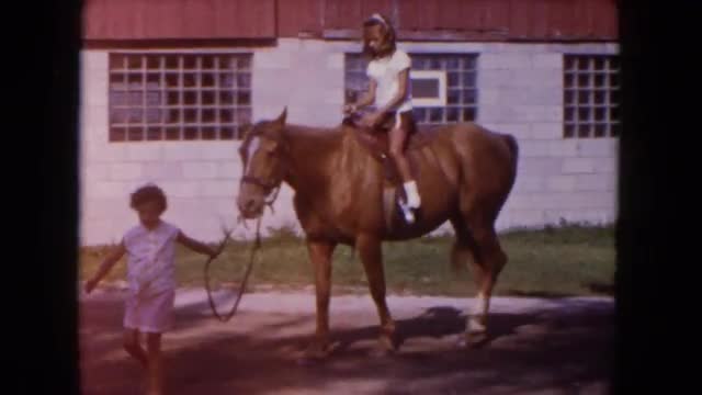 > 1960: girl walking a horse while another young girl is riding the horse FLORIDA
