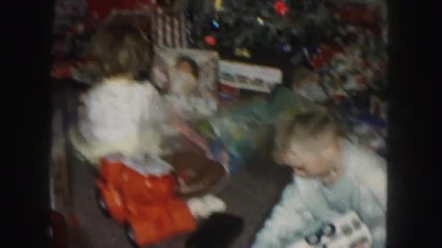 1974: excited children unwrap gifts on christmas morning LYNBROOK, NEW YORK