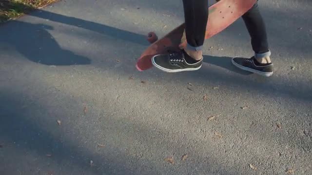Teenager holding a skateboard ready to go in the skatepark in sunset, 100FPS record, slowmotion