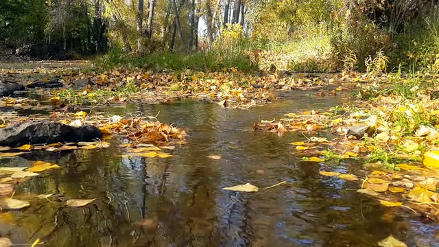 Autumn Tree Branches With Golden Leaves in the Wind. Rayed Sun.