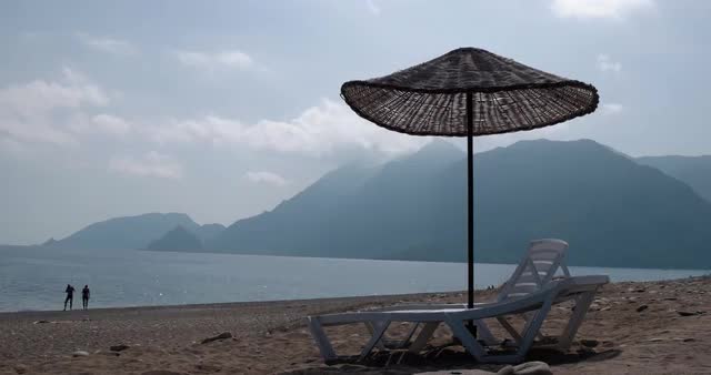 656044 - Umbrella and Beach Chairs on the Beach Time Lapse
