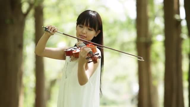 A day shot of a beautiful blonde girl in the park in sunny autumn day, 100FPS shot, slowmotion