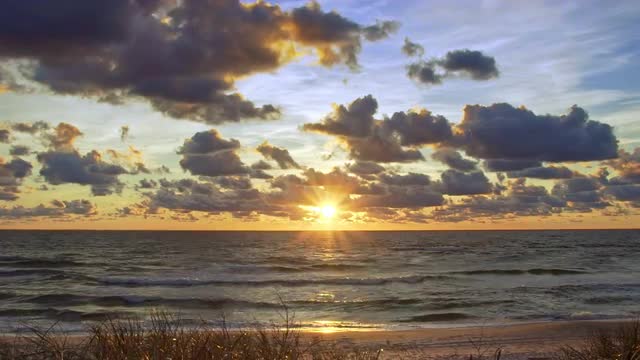 View of Waves Rolled at Sea Coast Line With Huge Rock at Sunset