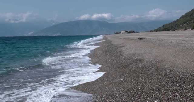 > View of Waves Rolled at Sea Coast Line With Huge Rock at Sunset