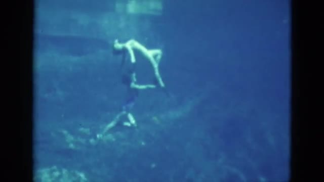 > 1952: two ladies performing a dance underwater using air tanks below are heading to the surface CAMD