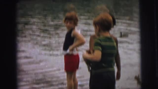 > 1974: children at a lake, swimming and feeding ducks CLARKSON, NEBRASKA