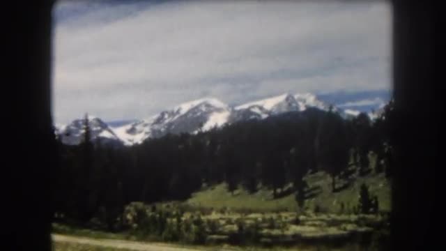 > 1962: a beautiful snow capped mountain ridge as seen from a moving vehicle FLORIDA
