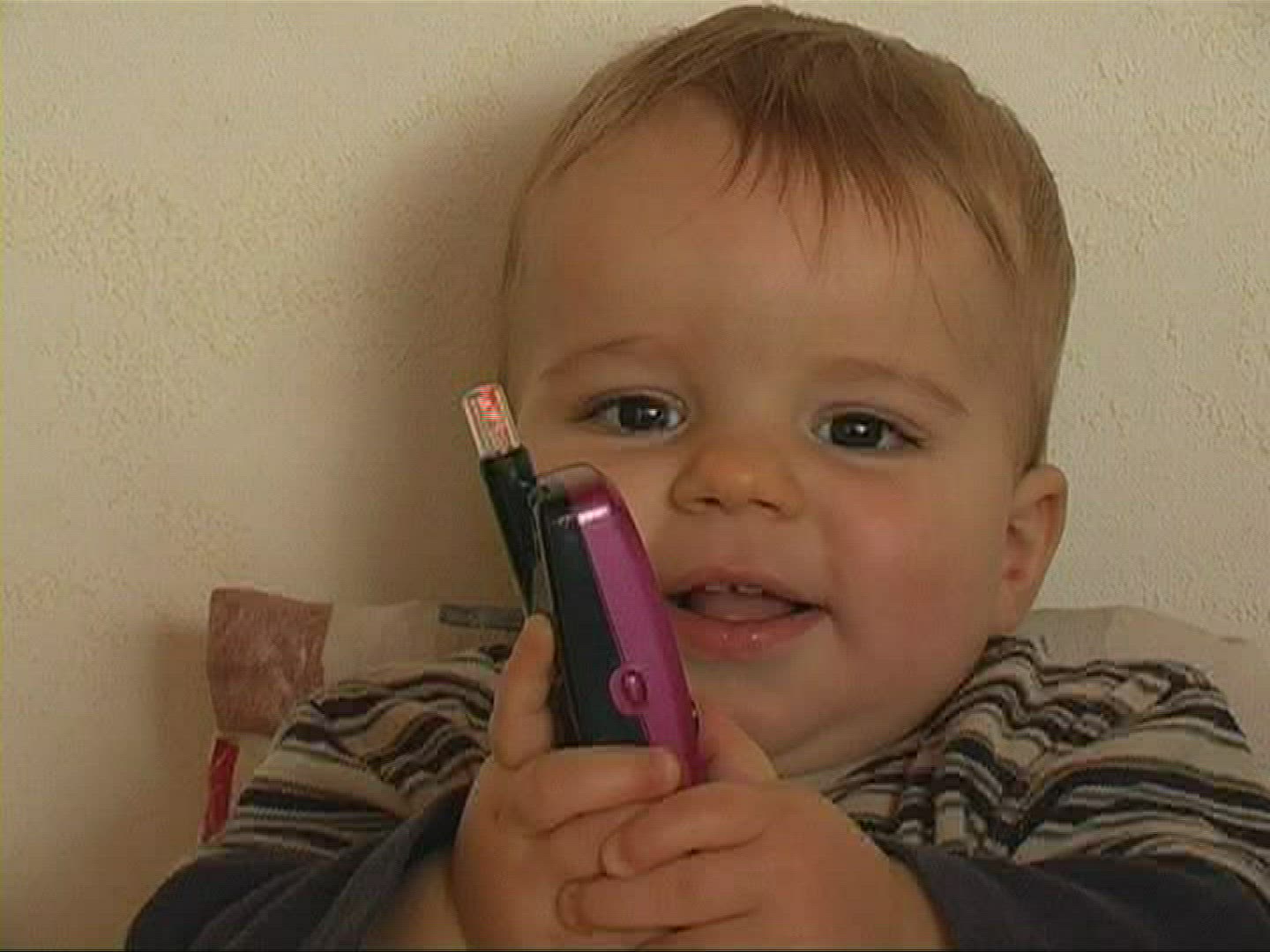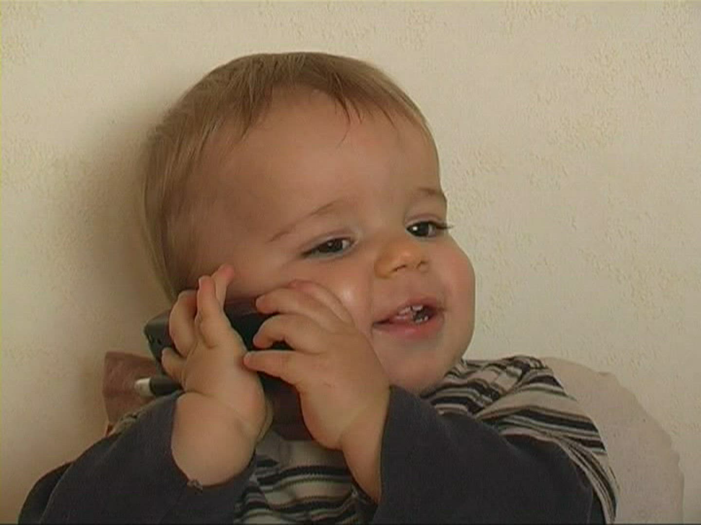 > Young teen on coconut tin can wireless phone smiling