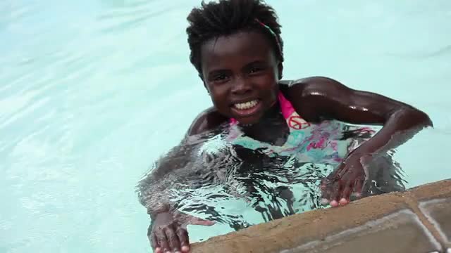 1964: child swimming in a pool with life preserver CAMDEN, NEW JERSEY