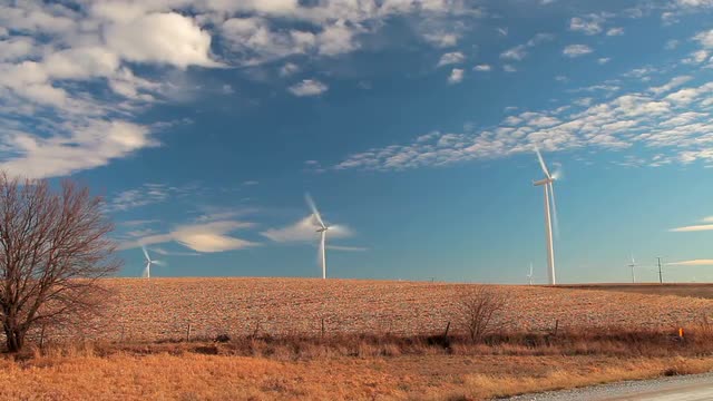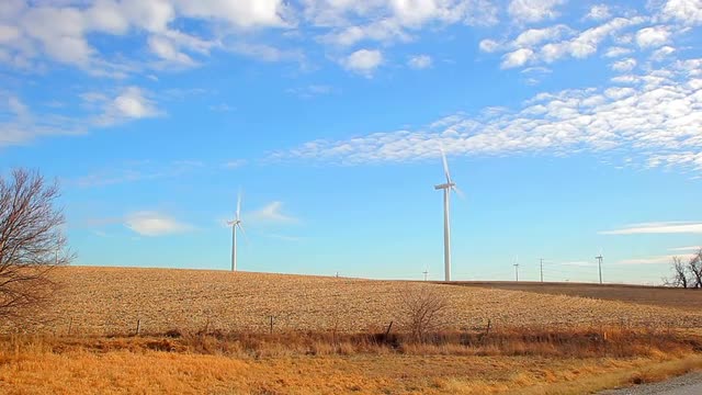 > Summer clouds rolling past rural Iowa water tower