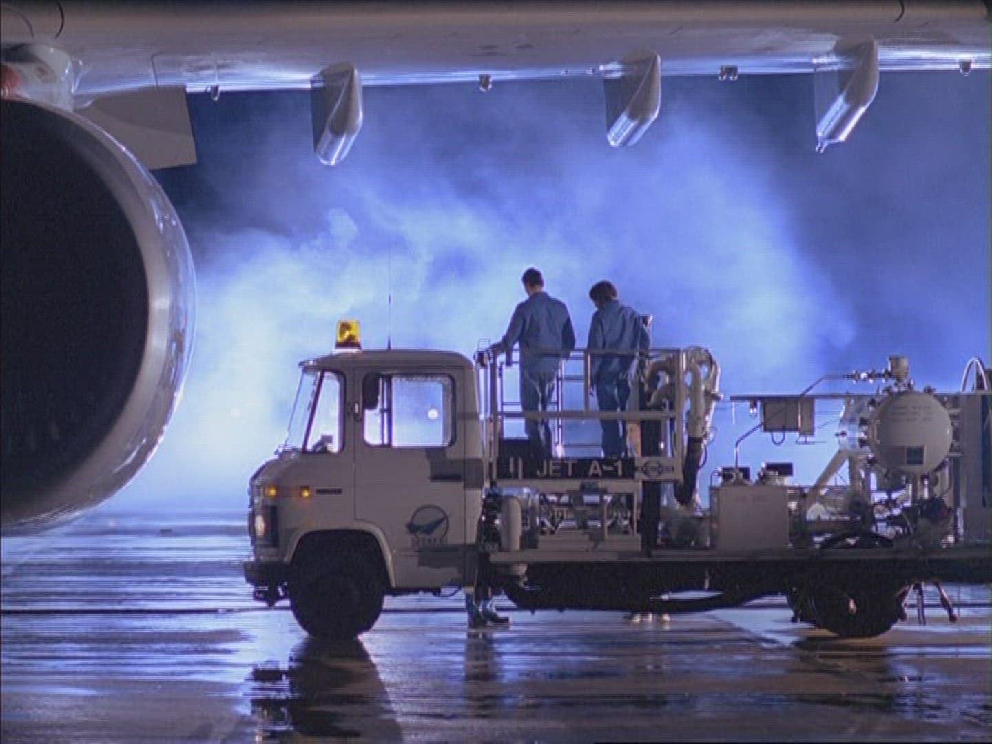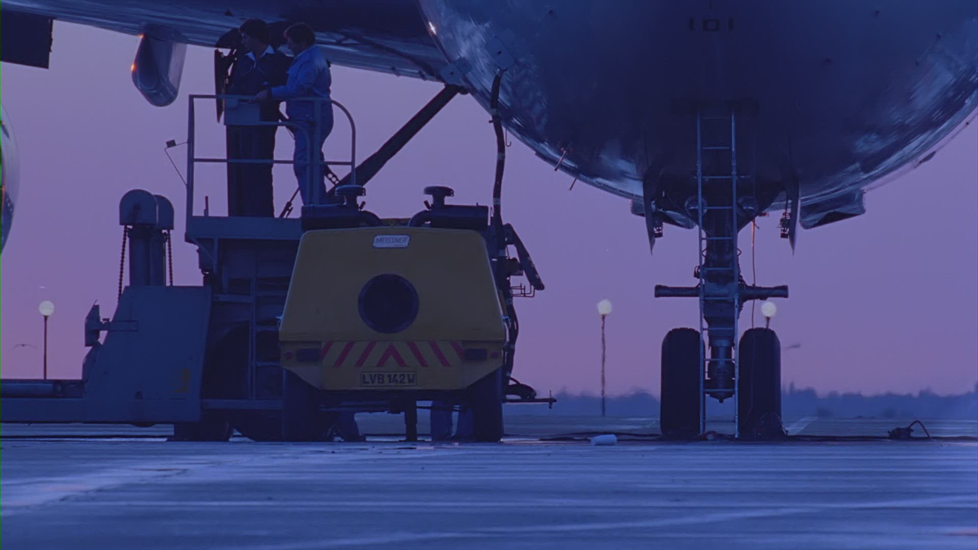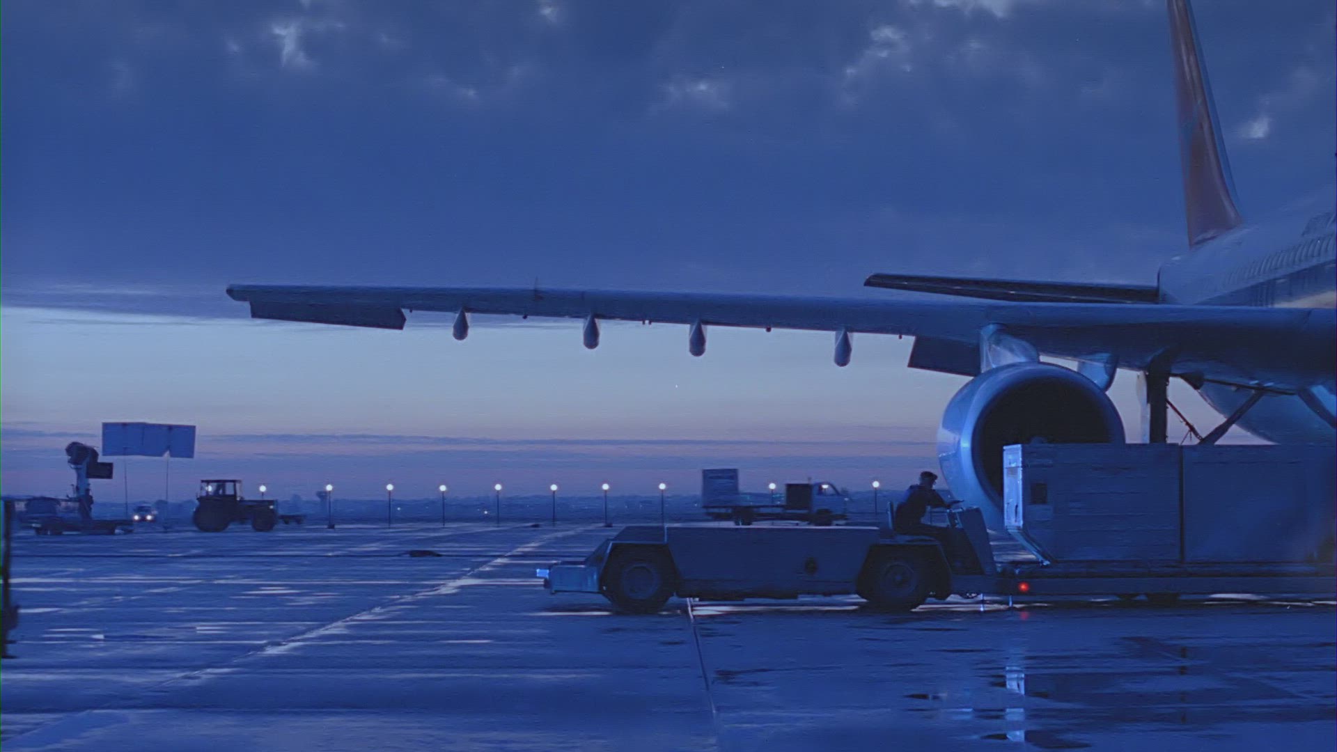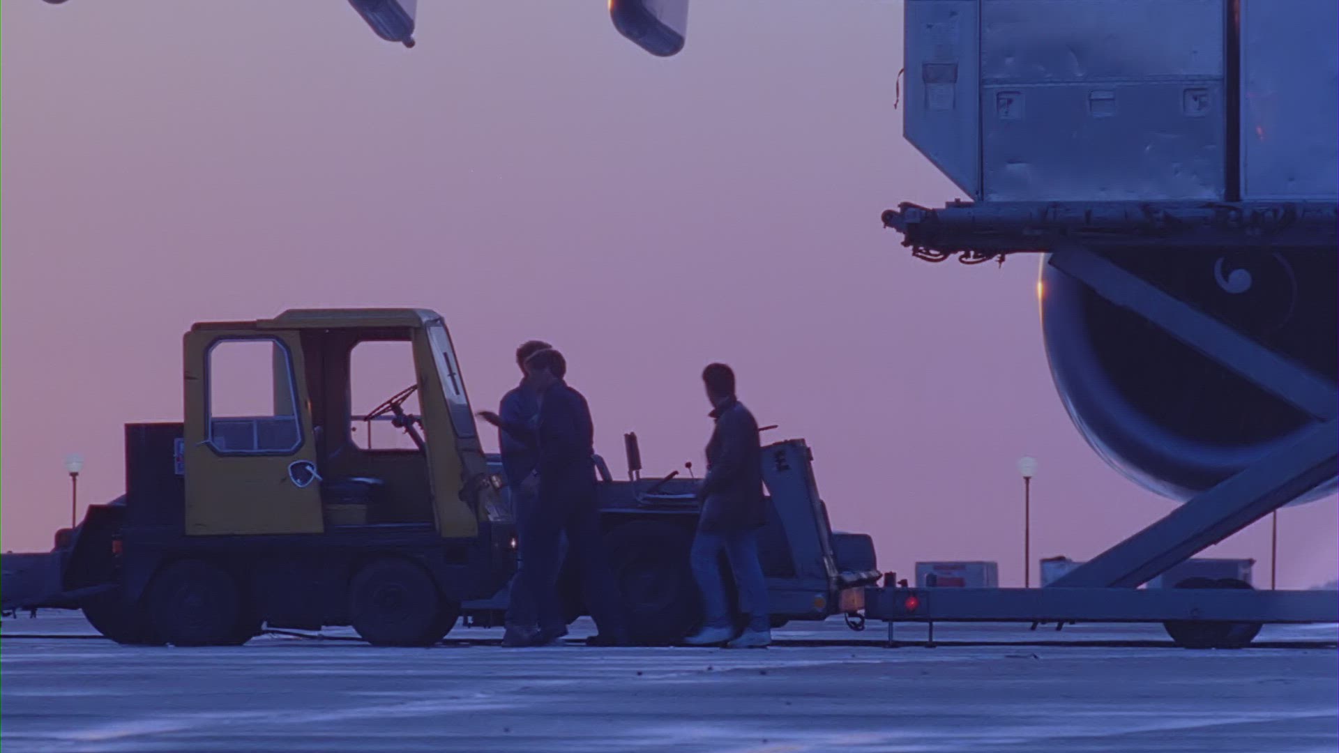> 1972: airplanes are being shuttled for maintenance at a large airport with many vehicles CHICAGO, IL