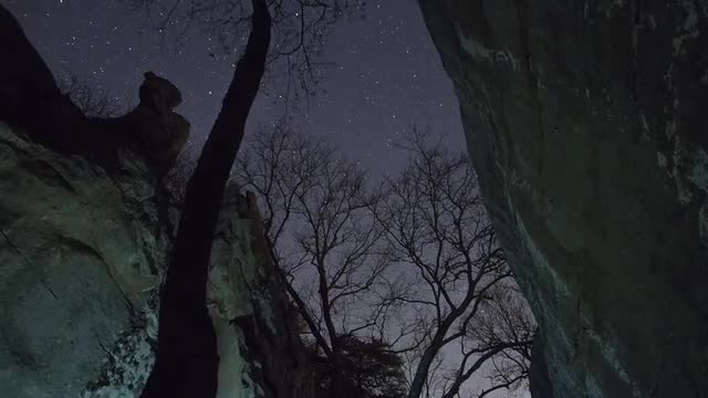 Winter nightscape at the popular Alabama climbing area known as Sandrock.
