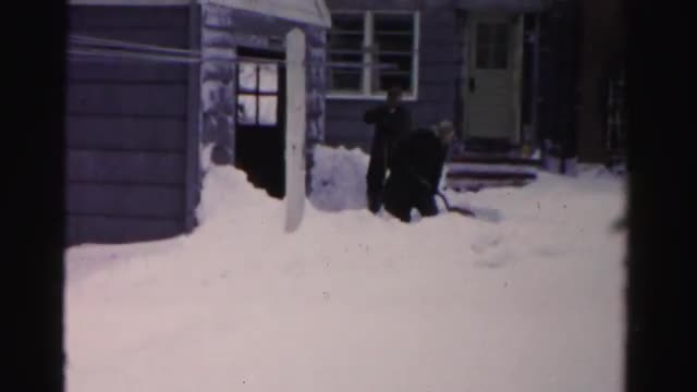 > 1956: shoveling deep snow outdoor a house NEW YORK