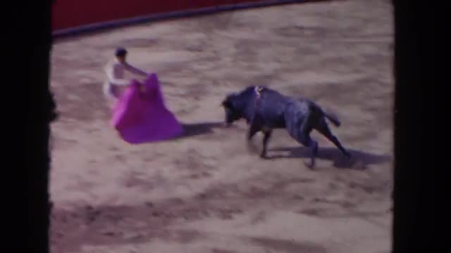 1962: a bull charging and attacking a bull fighter in a stadium SAN PEDRO, CALIFORNIA