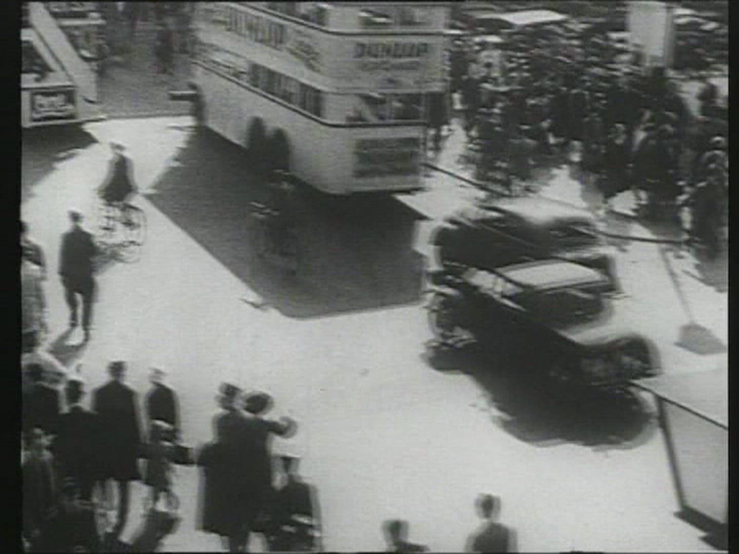 > 1962: a crowded, horse-drawn wagon passes by a building as people look on CATSKILL, NEW YORK
