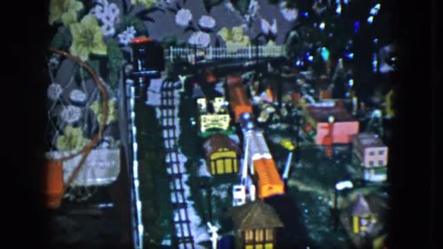 > 1951: a miniature train moving on a track under a christmas tree CLEVELAND, OHIO