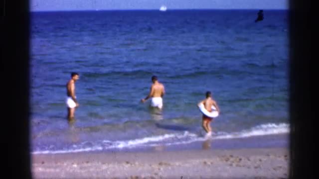 1962: adults and children wading in surf on a sunny day CATSKILL, NEW YORK