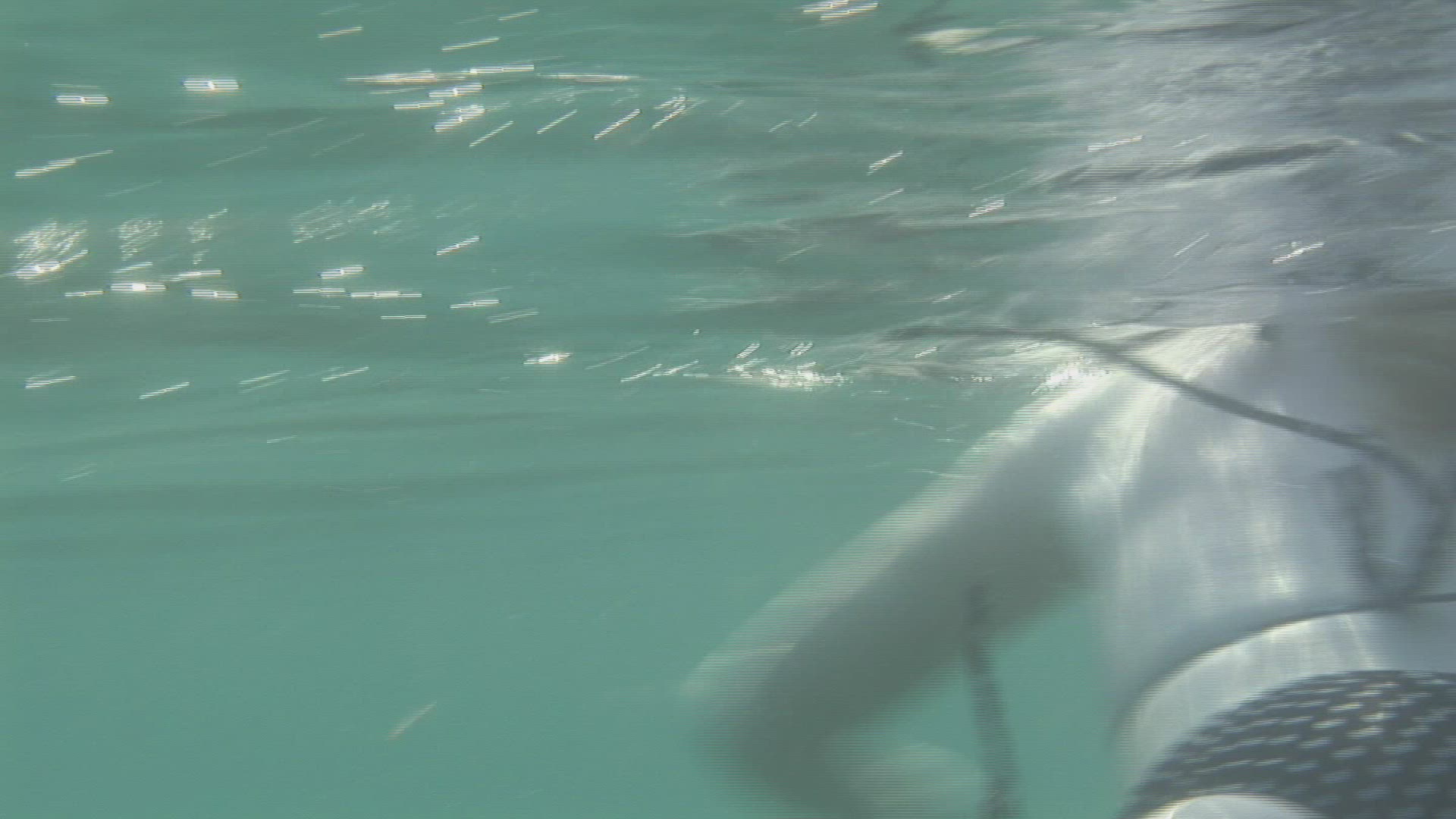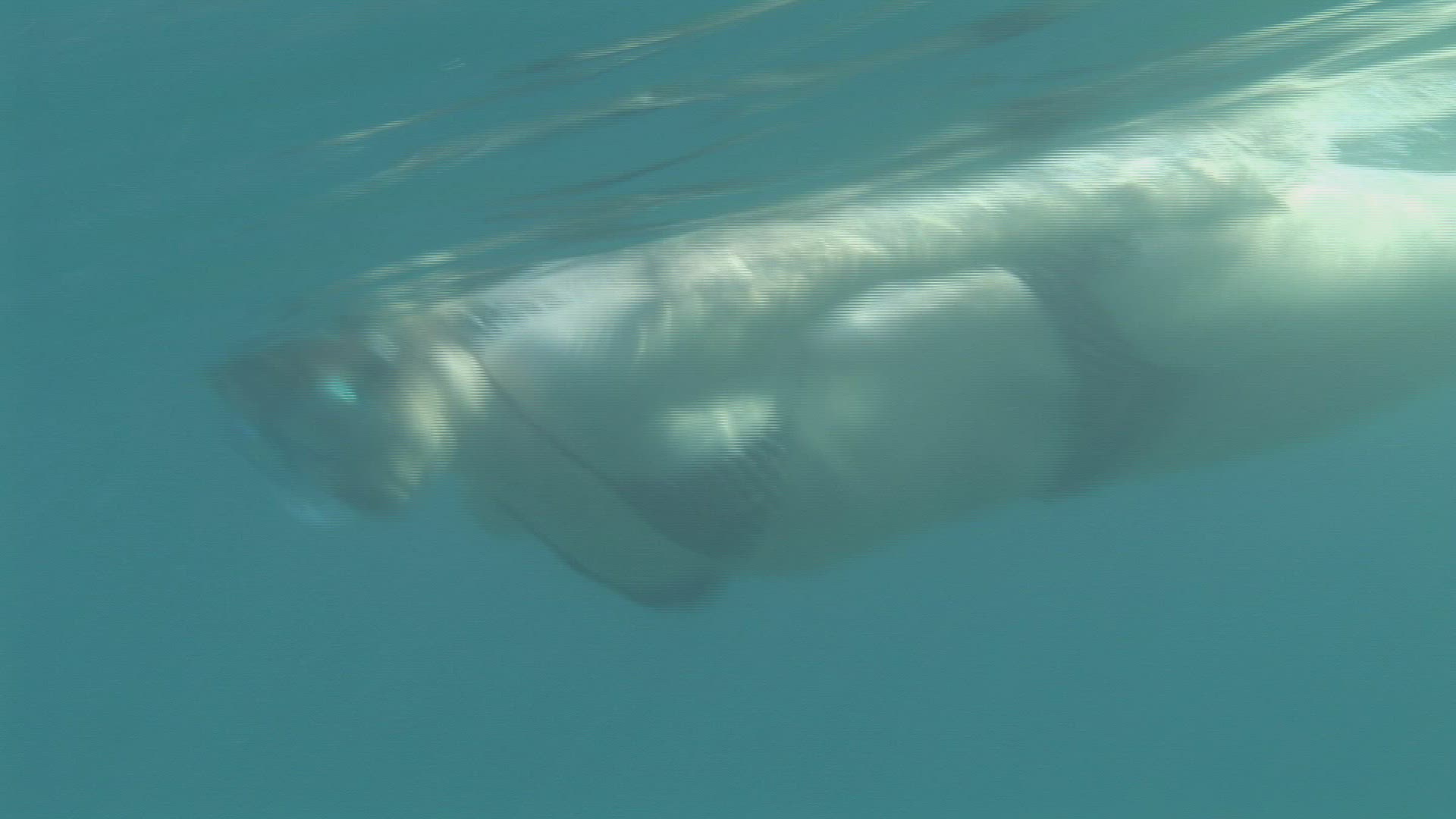 > 1962: beach water swimming bikini walking person blue CATSKILL, NEW YORK