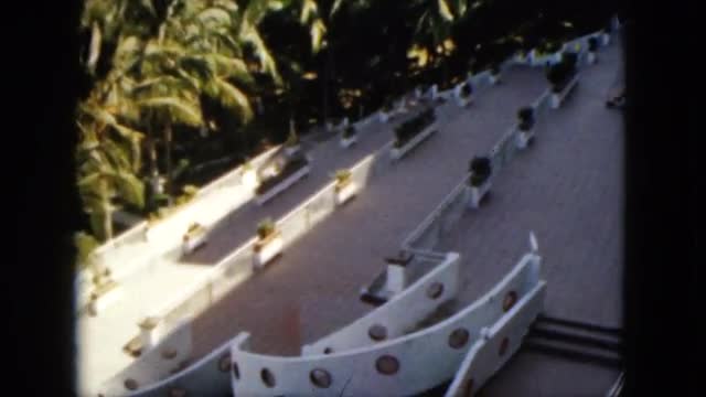 1962: the view of the outdoor of a hotel with palm trees MEXICO