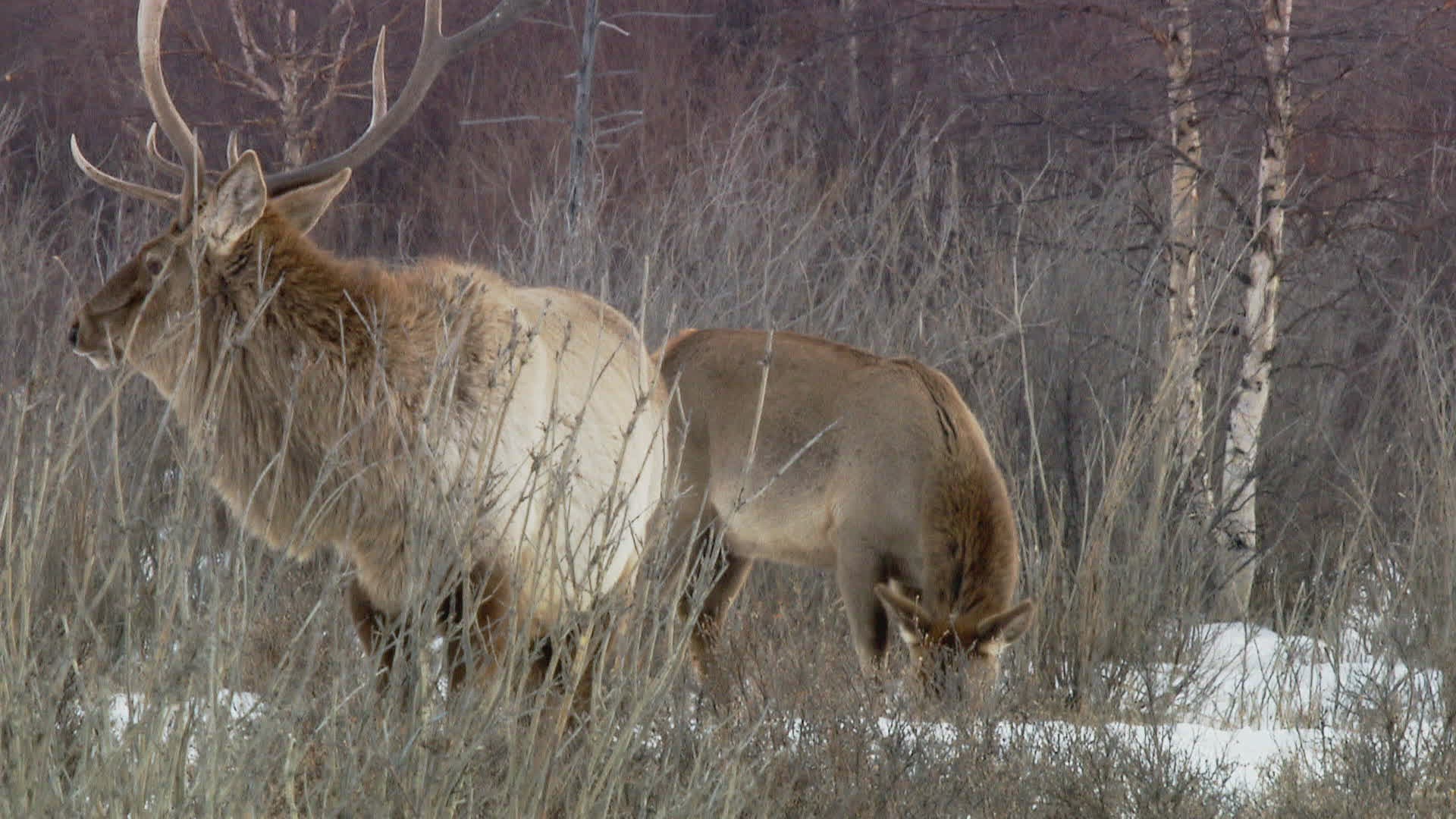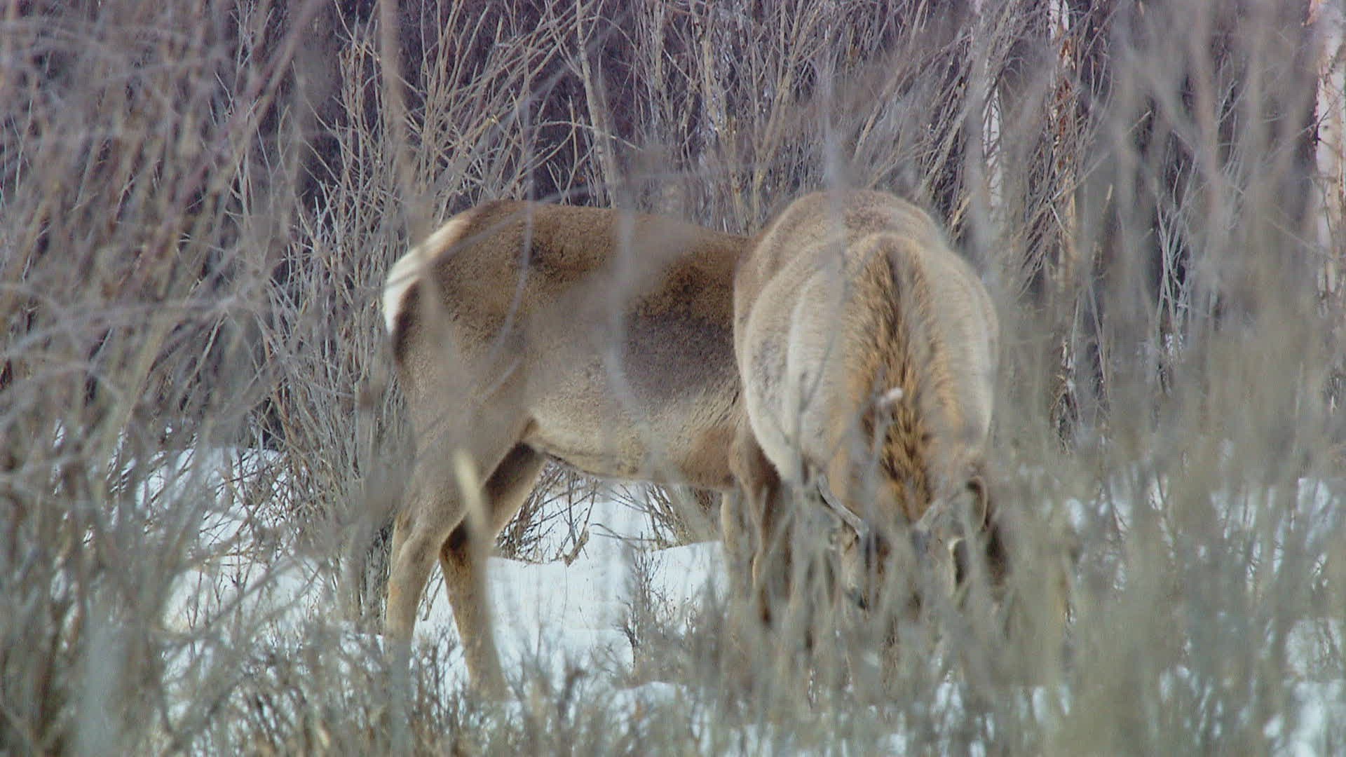 > 1967: two deer walking towards the bushes along the dry land COLORADO