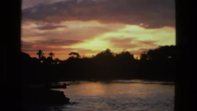 > 1979: a couple on vacations admiring and enjoying a wonderful sunset BRAZIL