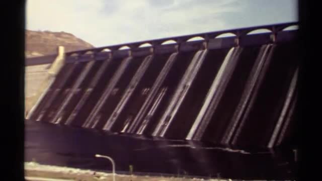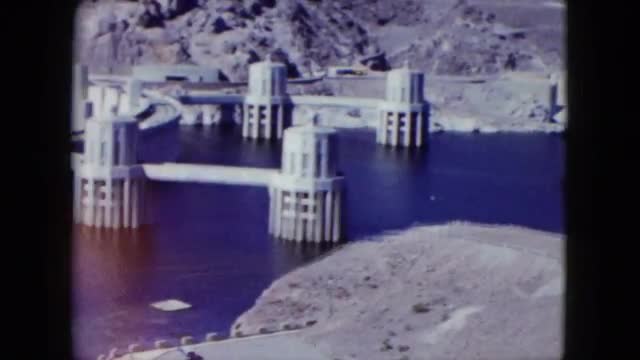 > 1959: aerial view large dam surrounding area. ARIZONA