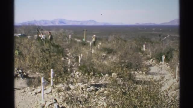 > 1959: vast arid land with sparsely distributed trees and mountain range ARIZONA