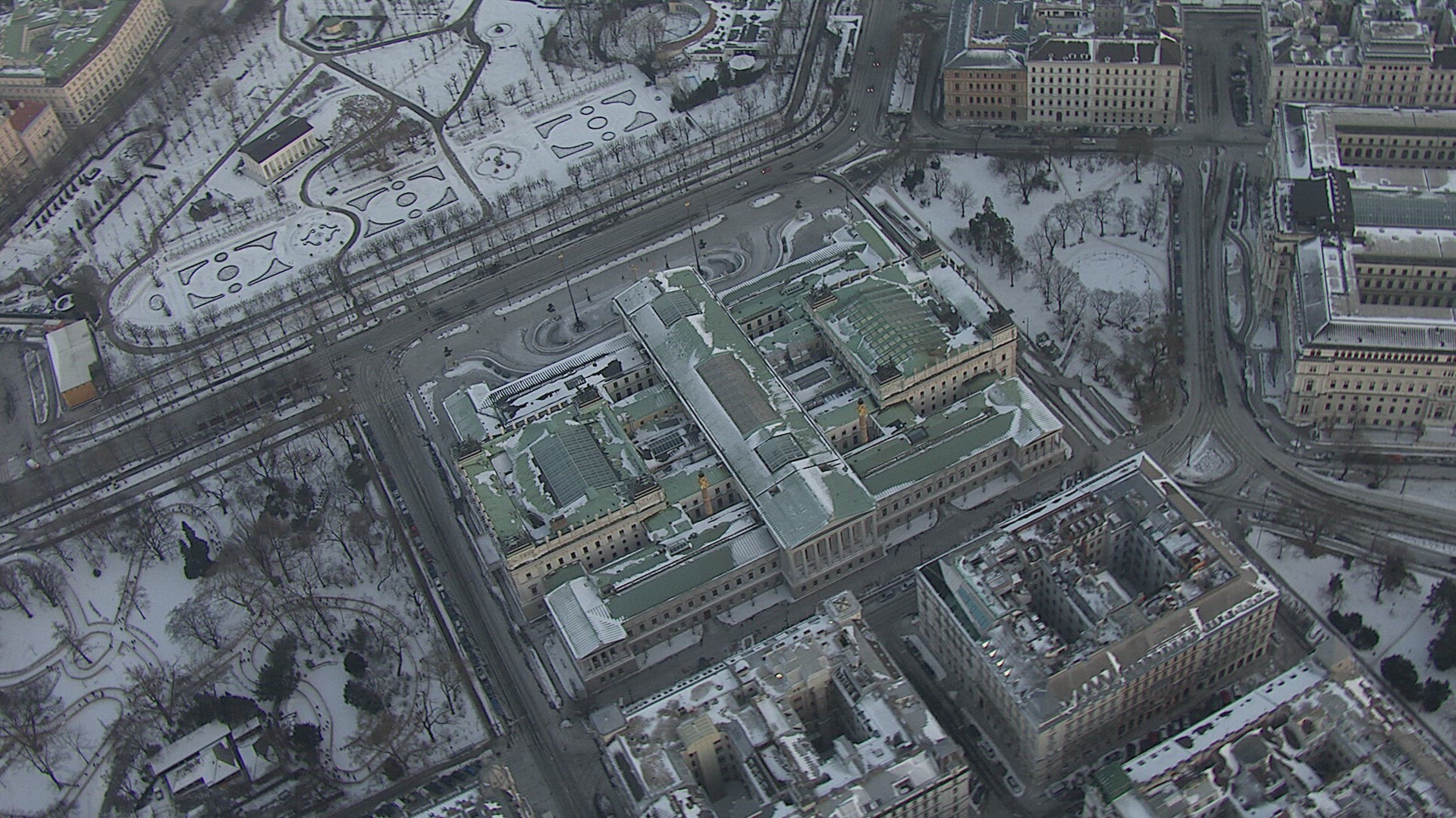 > 1963: large building covered with snow lying in the snowy field MAINE