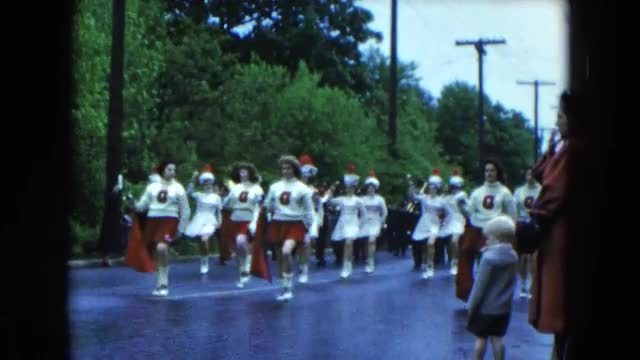 1954: various people marching through the street in a parade HICKSVILLE, NEW YORK