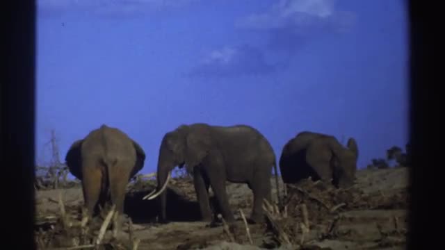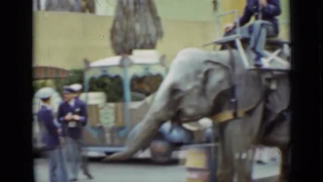 > 1972: funny elephant swinging his trunk and moving his ears in hay WISCONSIN